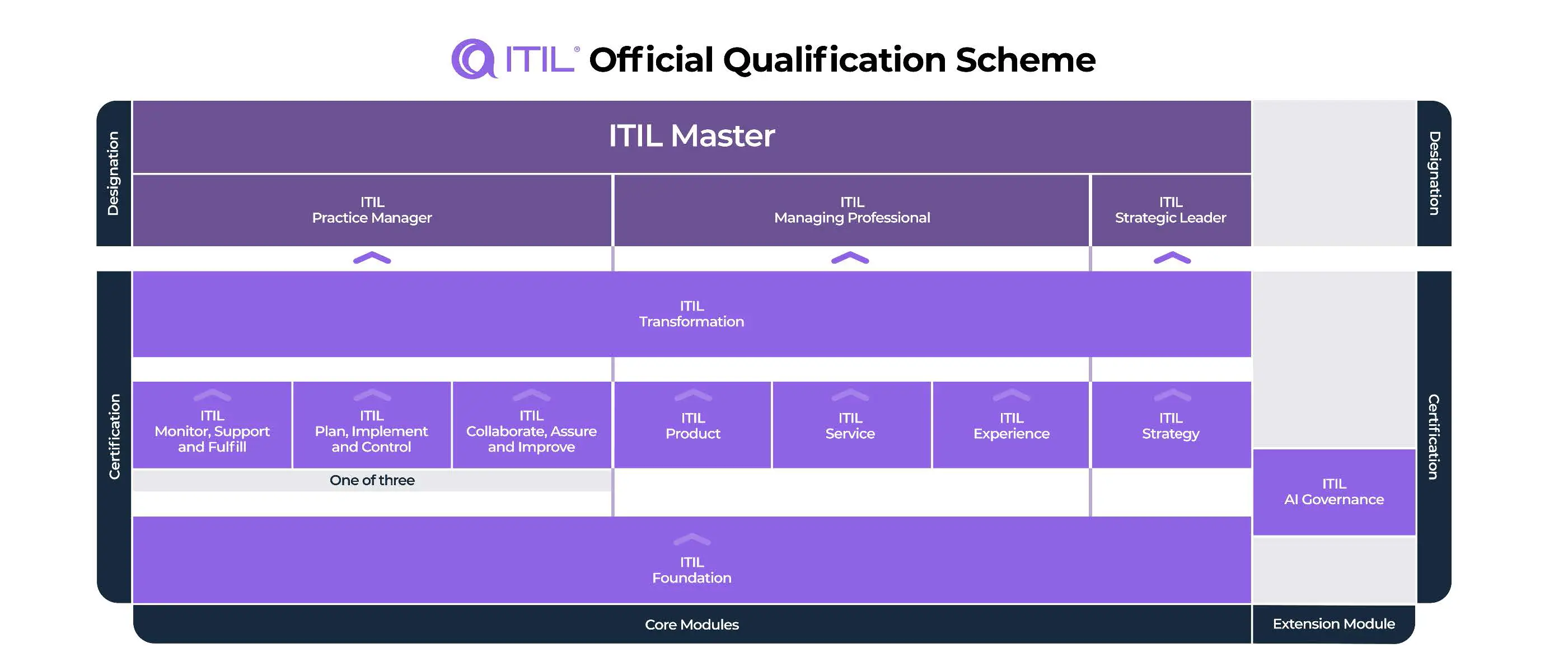 Du kannst nahtlos mit den advanced Modulen aus ITIL (Version 5) weitermachen, um zu deiner gewünschten Designation zu gelangen.